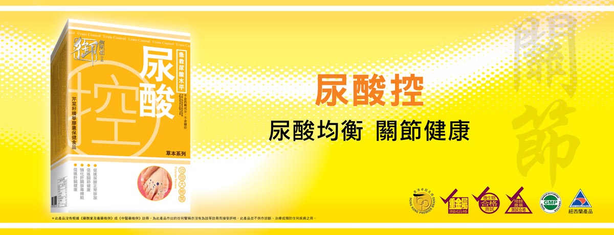 《尿酸控》以芹菜籽、魔鬼爪、薑黃及蒲公英葉等天然草本精華配製,有效清除血中廢物及多餘尿酸,並減少尿酸形成,全面急救健康;服後關節靈活,血液淨化,尿酸水平長期穩定,而且產品成分天然,不含西藥,不會影響肝臟,適合長期服用。